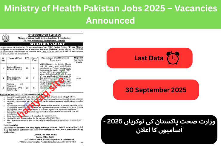 The Ministry of Health Pakistan Jobs 2025 – Vacancies Announced bring a golden opportunity for