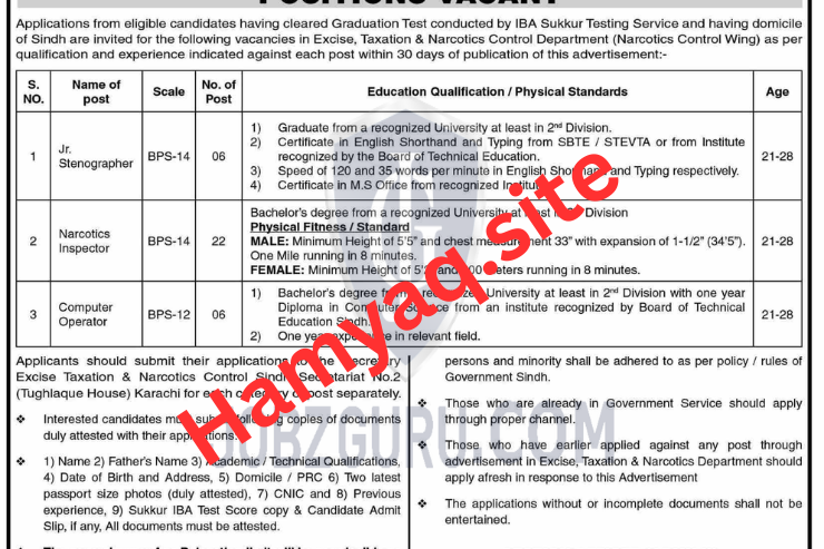 Vacancy LocationPakistan (Provincial Excise & Taxation Departments)