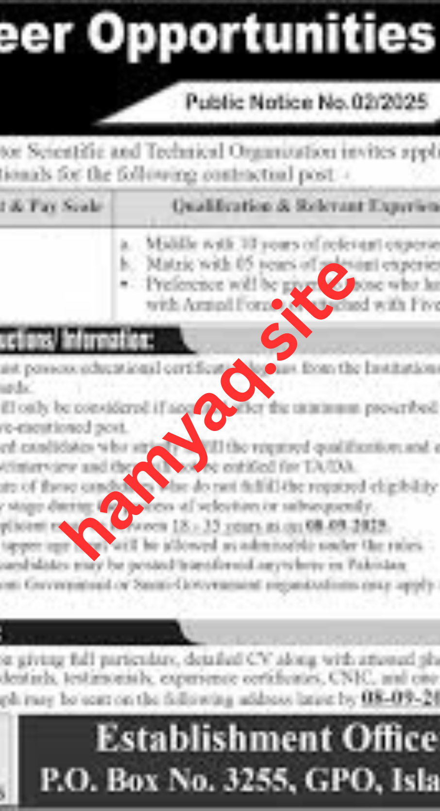 | Vacancy Location | Major Cities of Pakistan (Karachi, Lahore, Islamabad, Multan) |