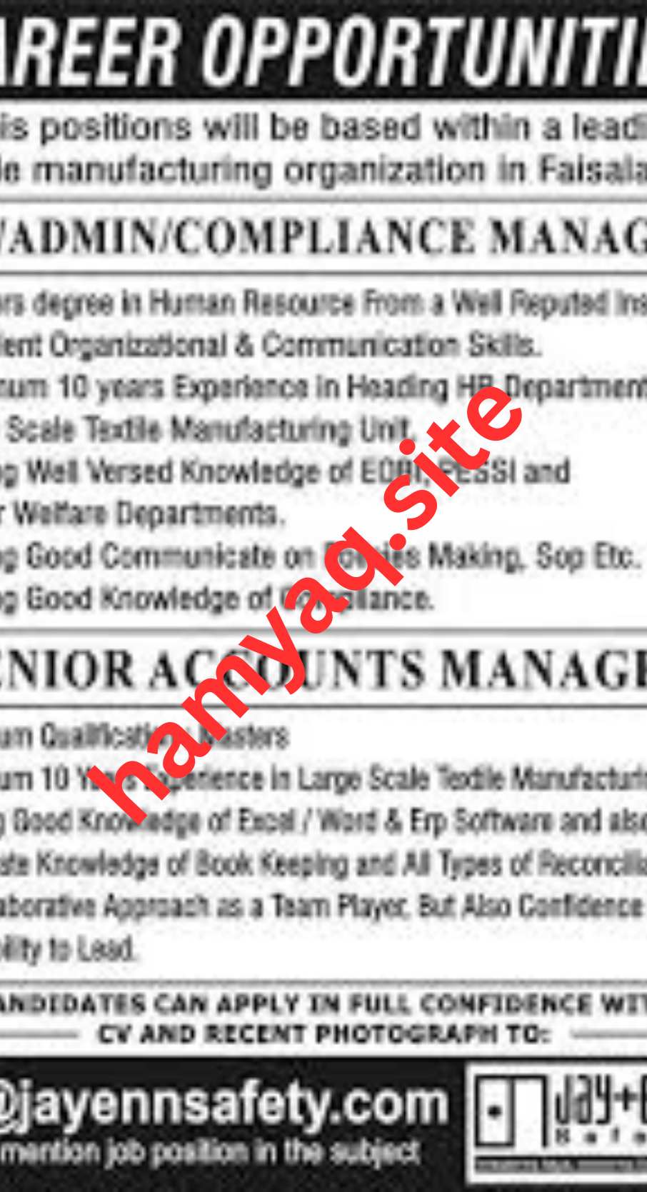 Textile Industry Jobs in Faisalabad 2025 bring excellent career options for those seeking stability and growth in Pakistan’s booming textile sector. From factory workers to management professionals, these roles ensure skill development, financial security, and long-term career prospects. Faisalabad’s textile industry is at the heart of Pakistan’s exports, making it a vital sector for job seekers. If you are motivated, qualified, and ready to work in a professional environment, this is the perfect chance to apply. Secure your future today by joining one of Pakistan’s most dynamic and ever-growing industries.